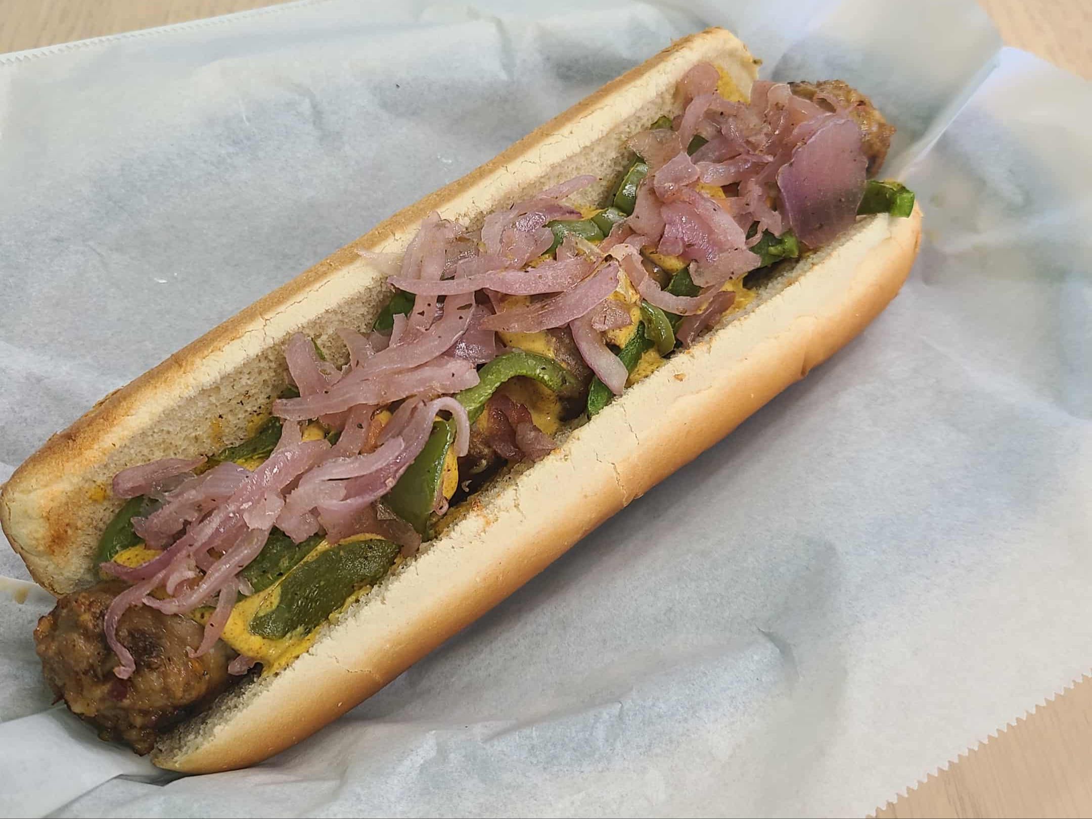 Sausage Links On on a Sausage Roll w/optional Peppers and Onions